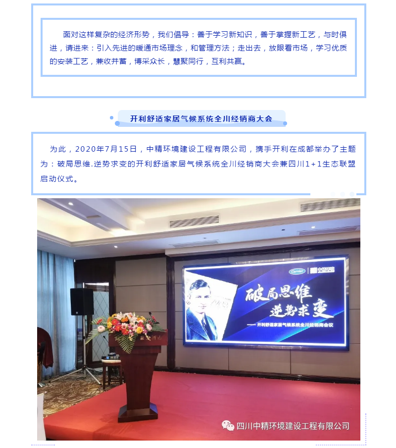 深耕两联供,中精环境开利舒适家居气候系统全川经销商会议成功召开